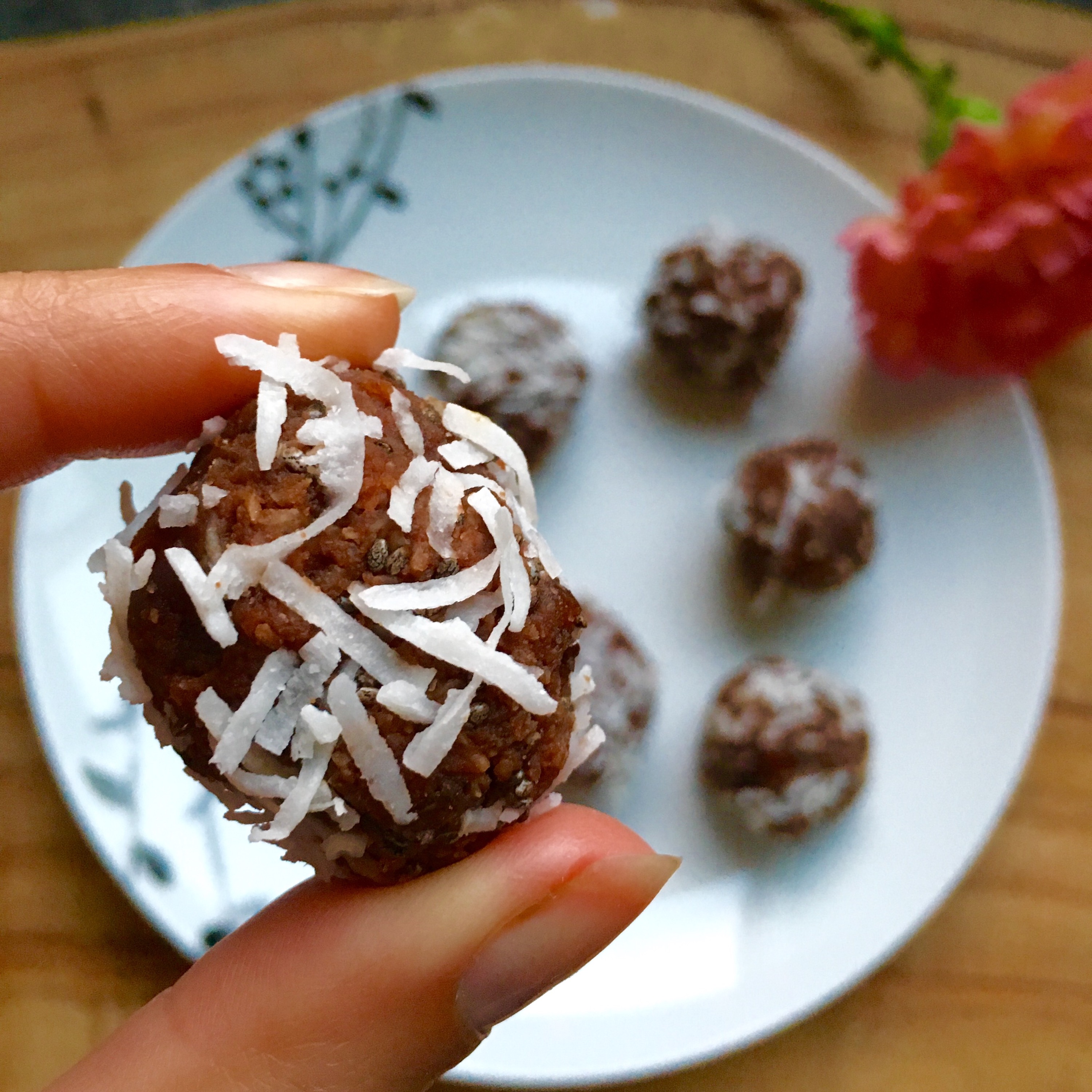 My favourite Bliss Balls have been adapted from a few recipes that I have read recently. As I’m trying to reduce added sugar where possible, I’ve cut a few items from my initial recipe.